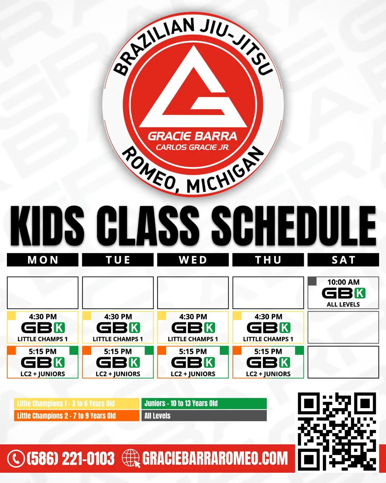 At Gracie Barra Romeo, we offer a full range of classes for kids, teens, and adults — from beginners taking their first steps on the mat to advanced students refining their techniques. Our structured curriculum ensures consistent progress, safety, and fun for everyone.